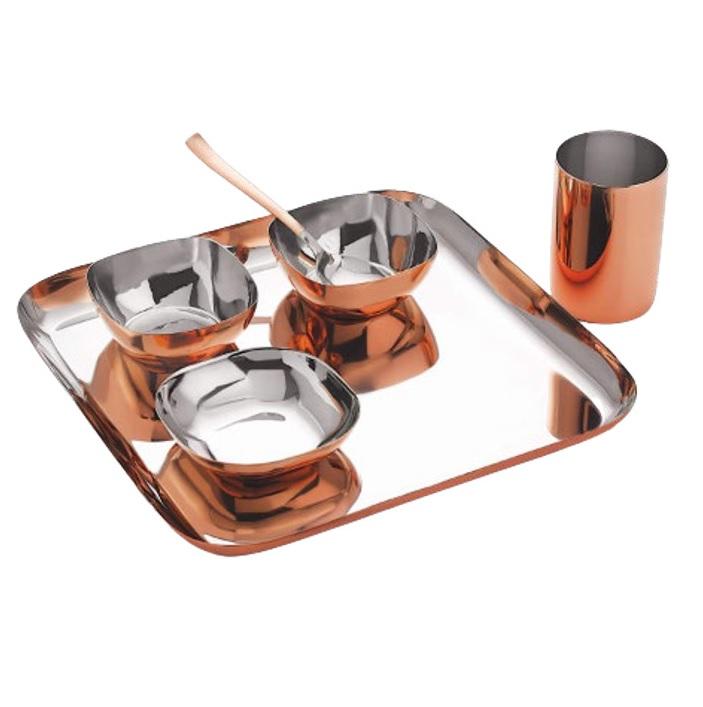High Quality Copper Dinner Set Wholesale Large Dinner Set 4 Bowls Glass and Spoon Luxury Design Handicraft