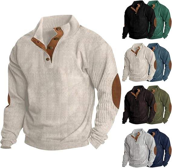 High Quality Corduroy Men's Winter Hoodie Solid Color Stand Up Collar Non Hooded Warm Fashion Top