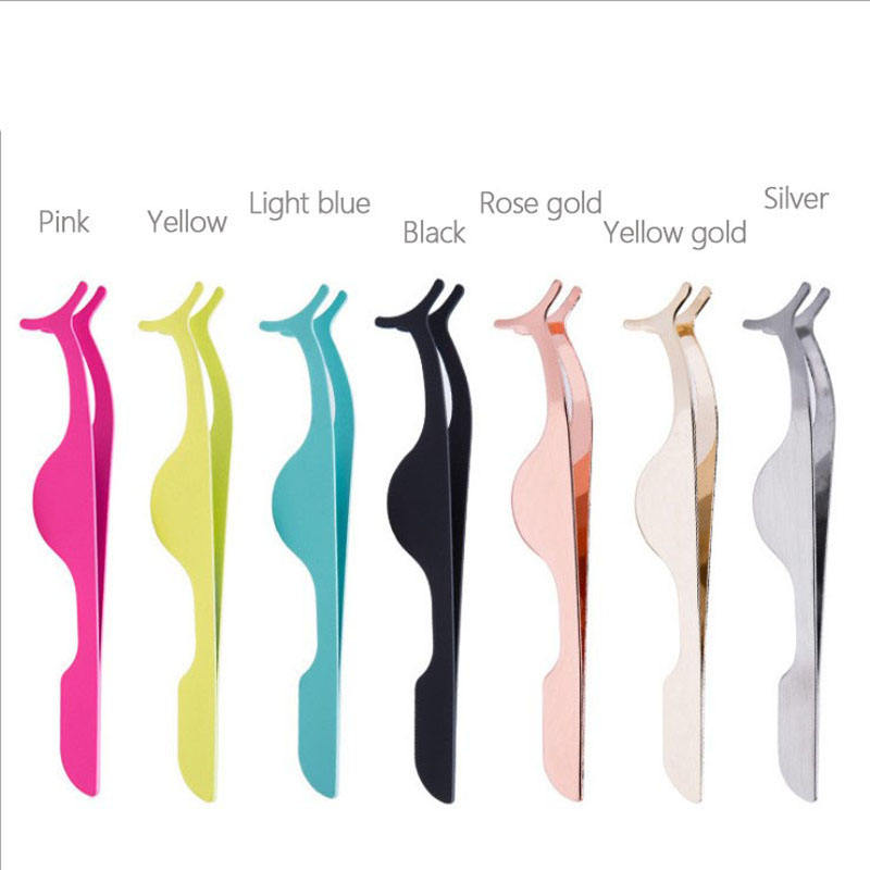 High Quality Rose Gold Eyelash Tweezers Custom Color Stainless Steel Plastic Eye Brow Applicator Beauty Tool