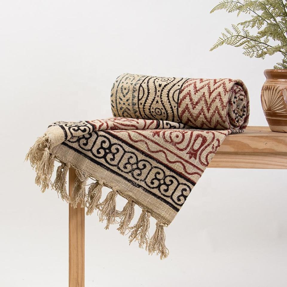 High Quality Cotton Block Printed Vintage Beautiful sofa Cover Throw Blanket For Living Room Decor