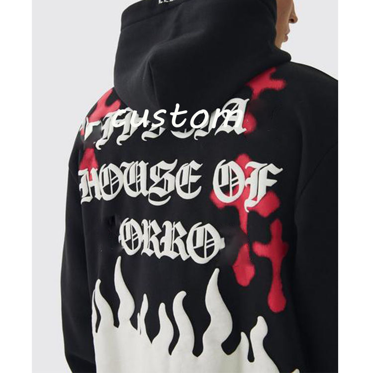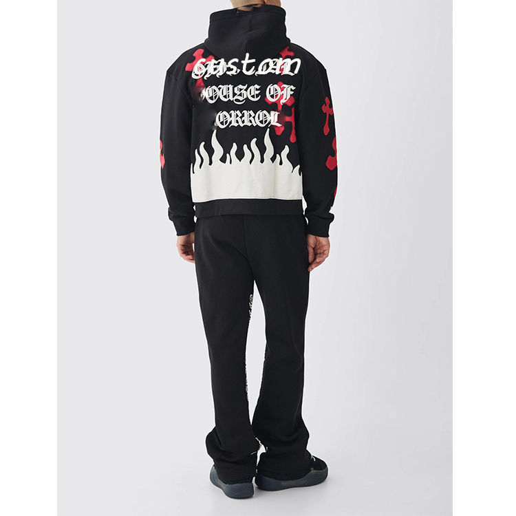 High Quality Cotton French Terry Streetwear Oversized Long Sleeve Flare Pant Boxy Skeleton Puff Print Cross Man Tracksuit