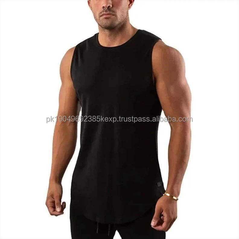 High Quality Cotton Men's Tank Tops Custom Logo Printed Gym Fitness Vest Breathable Plain Stretch Fit Casual Embroidery 3D