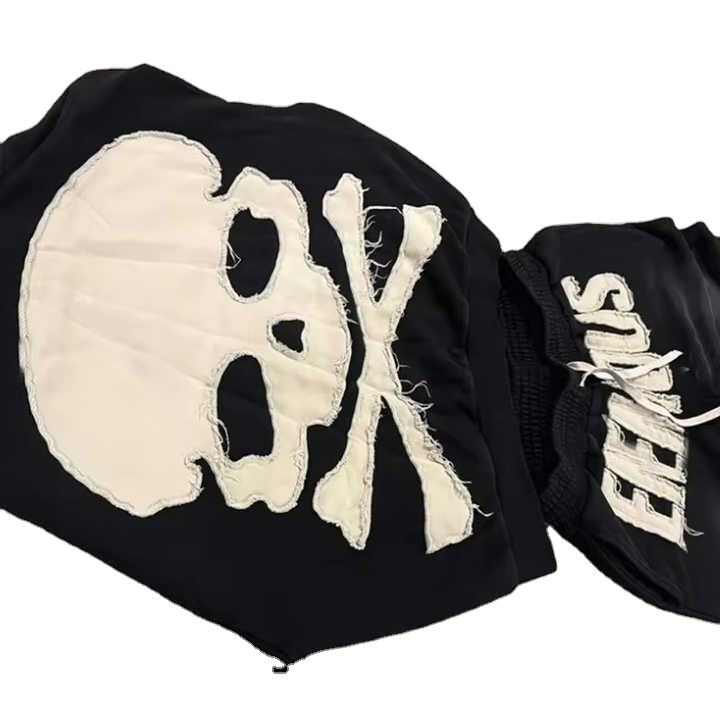 High Quality Cotton Sweat Suits Custom Logo Crewneck Tracksuit Set Hoodie Sweatpants Black for Men for Autumn Sportswear