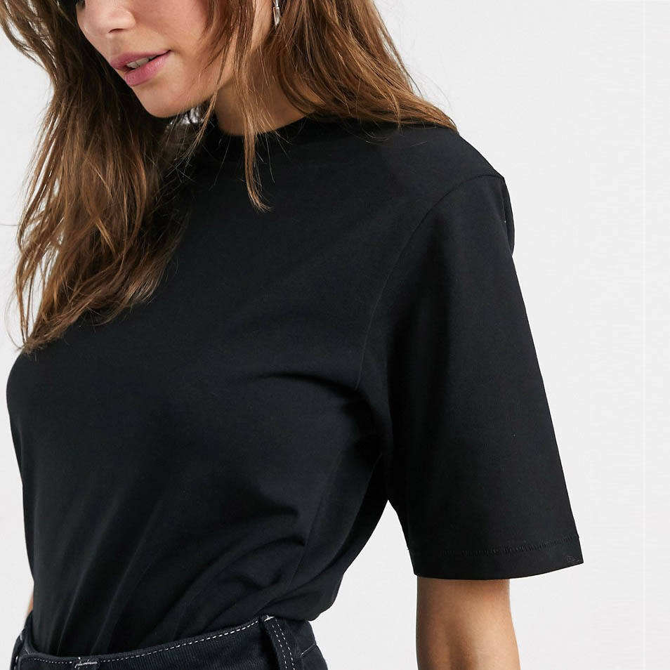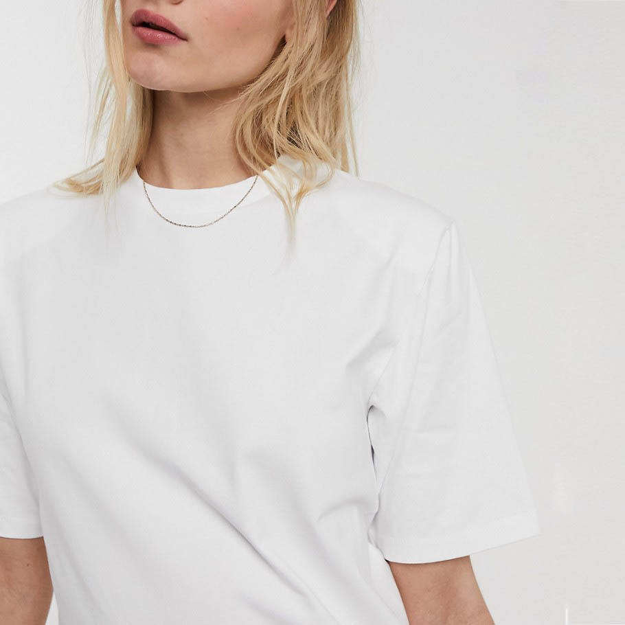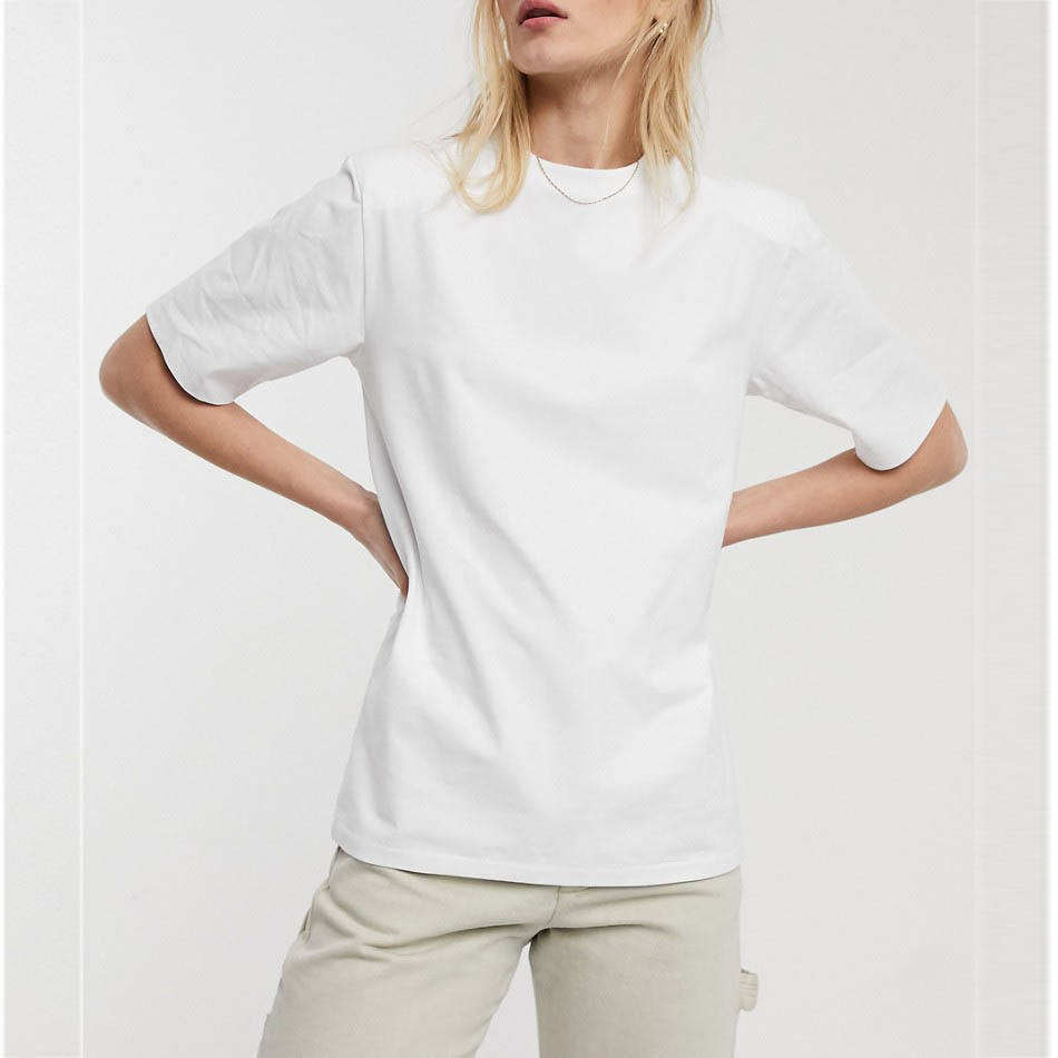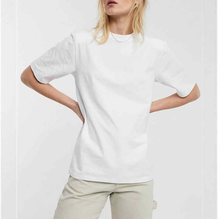 High Quality Cotton T-Shirt for Women Custom Printed Stylish Solid Pattern Shoulder Pad Breathable Casual Style China Wholesale