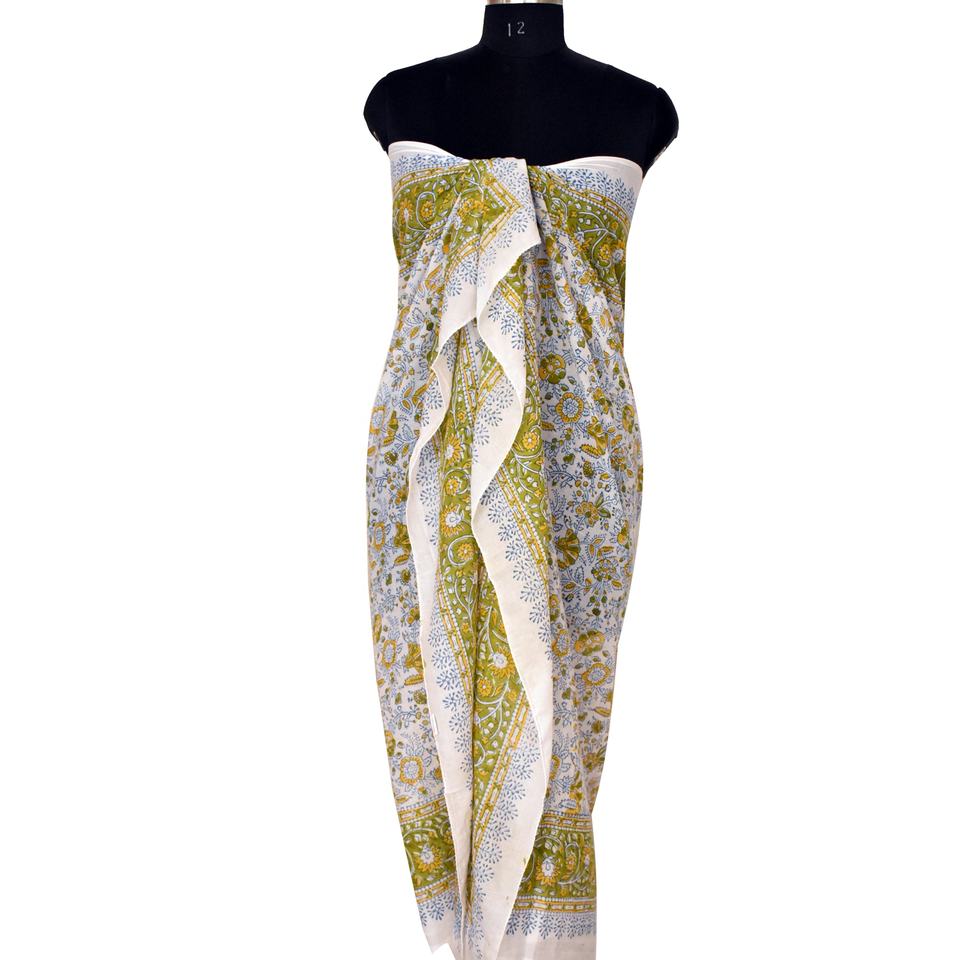 High Quality Cotton Woman's Sarong Handmade Plain White Pareo Sanganeri Block Printed Long Head Scarf Beach Cover Gift Summer