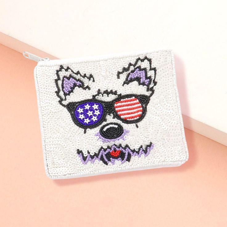 High Quality Cowboy Beaded Pouch White Red Blue Mini Coin Purse Zipper Closure Handcrafted Western Fashion Accessory Made Canvas