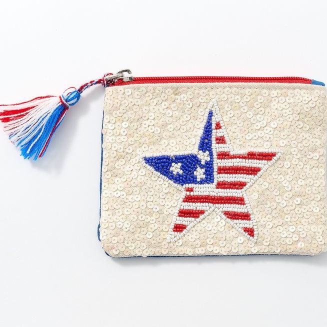 High Quality Cowboy Beaded Pouch White Red Blue Mini Coin Purse Zipper Closure Handcrafted Western Fashion Accessory Made Canvas