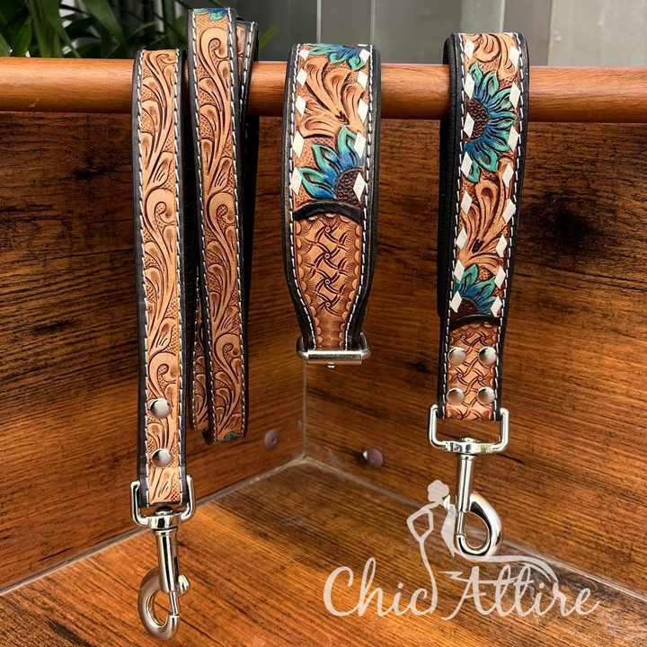 Product name:Genuine Cowhide Leather Pet Leash Set