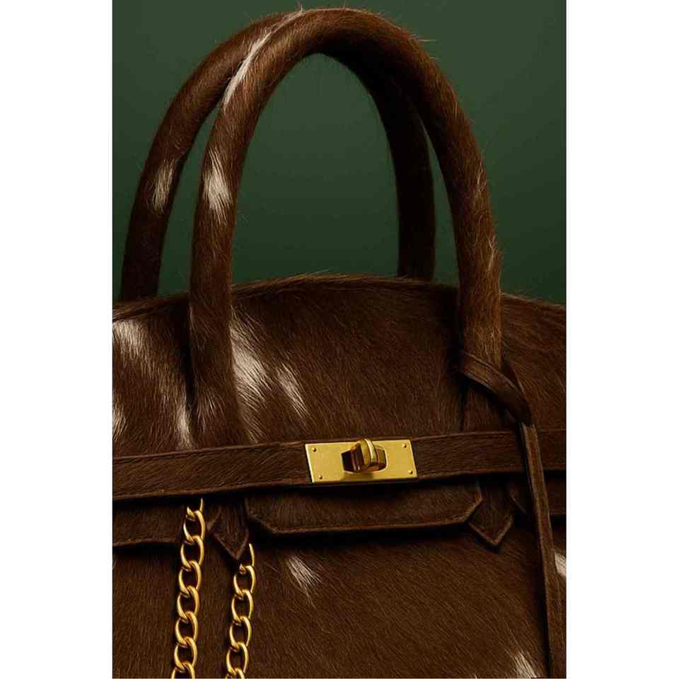 High Quality Cowhide Leather Top-Handle Tote Handbag with Chain Durable and Stylish for Daily Use for Summer and Autumn