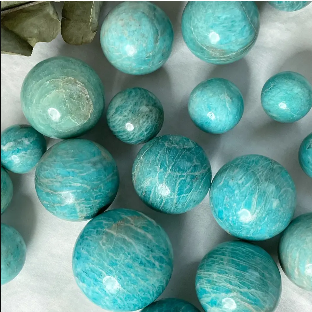 Wholesale Natural Crystal Crafts Amazonite Spheres Tianheite Ball Strong Flash Blue Amazonite Sphere for Decoration