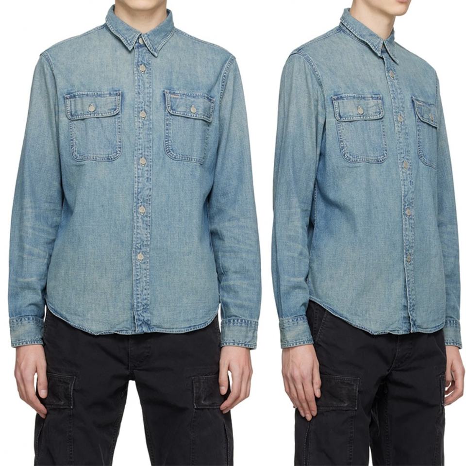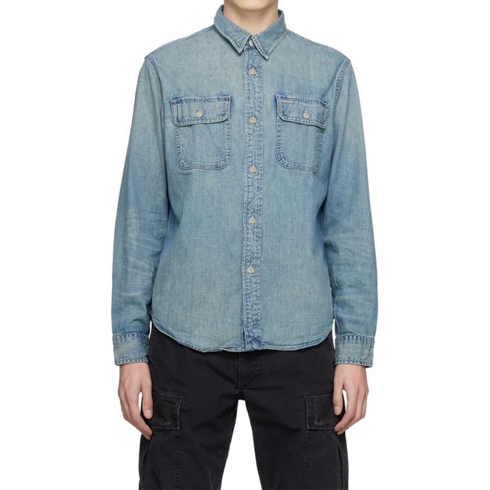 High Quality Custom 100% Cotton Flap Pocket Casual Classic Long Sleeve Denim Shirt for Men's Jean Shirt