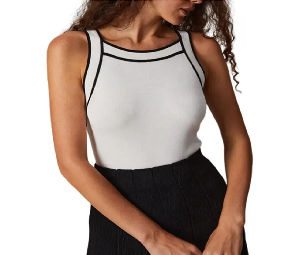 High Quality Custom Black and White Contrast Knit Tank Top Comfortable Crop Top for Women Plus Size Available Here