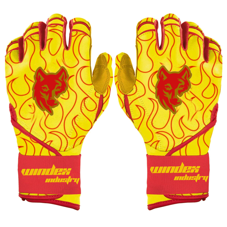 High Quality Custom Bruce Bolt Long Cuff Style Batting Gloves 100% Premium Cabretta Leather Baseball Batting Gloves