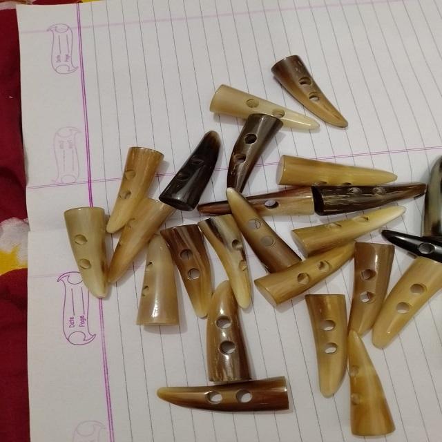 High Quality Custom Buffalo Horn Toggle Button 2-Hole Natural Jacket with Shank Style for Clothing Jeans Shoes Coats Decoration