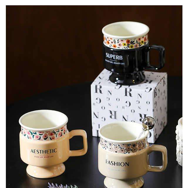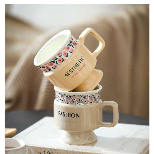High Quality Custom Colorful Floral Design Eco-friendly Dishwasher & Microwave Safe Stoneware Ceramic Tall Mug