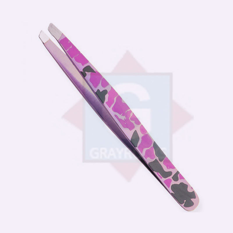 High Quality Custom Design Manicure & Eyebrow Graft Tweezers Colorful Slanted Tip Beauty Tools with Customized Logo