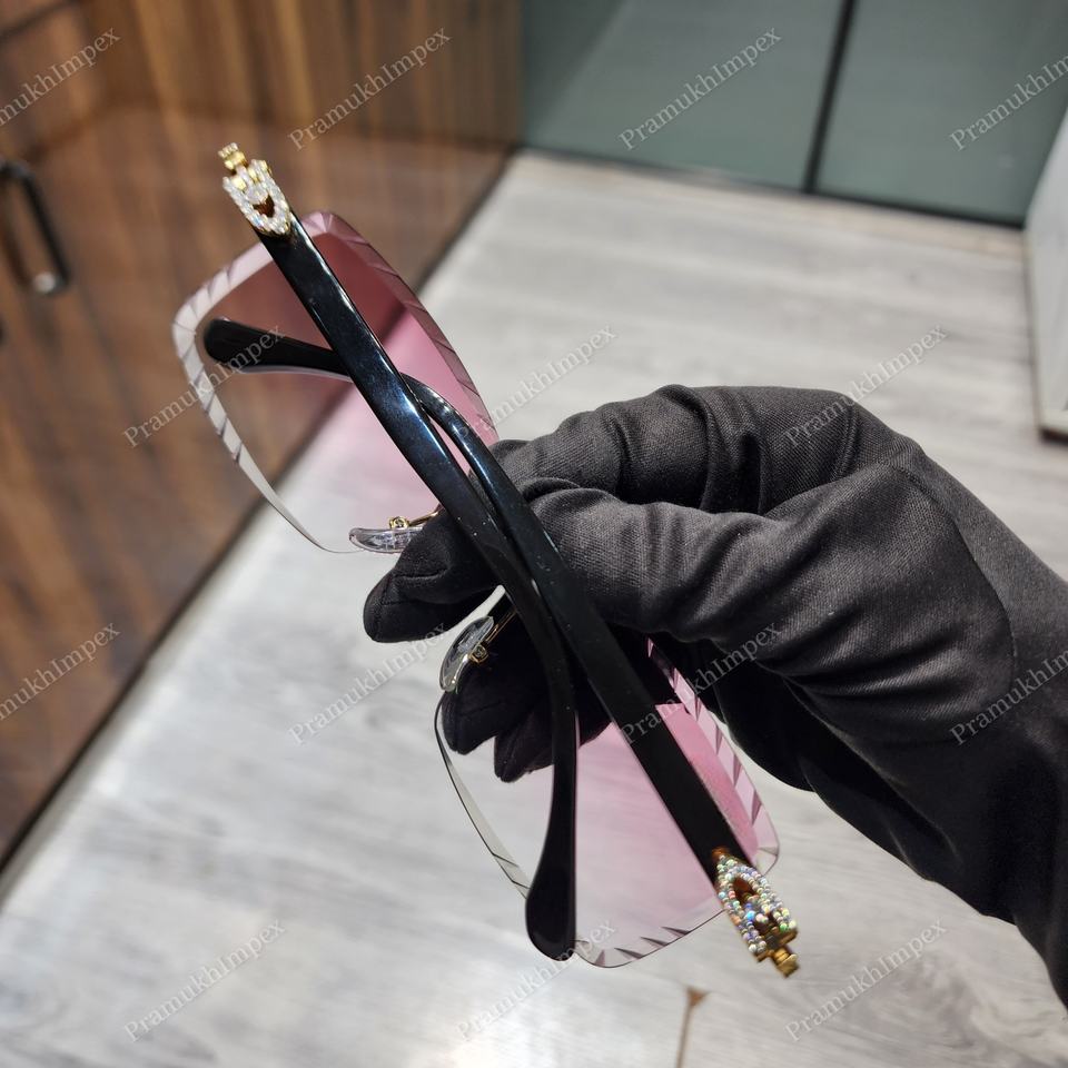 High Quality Custom Designed Anti-Reflective Pink Shade Lens Moissanite Diamonds Studded Stainless Frame Iced Sunglasses