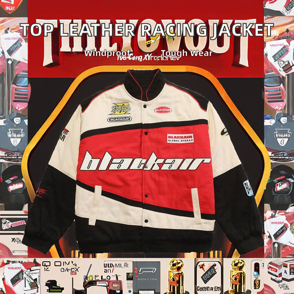 High Quality Custom Designed Casual Leather Racing Jacket for Motorbike Autumn Stand Collar Embroidery Patch Button Wholesale PU
