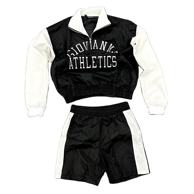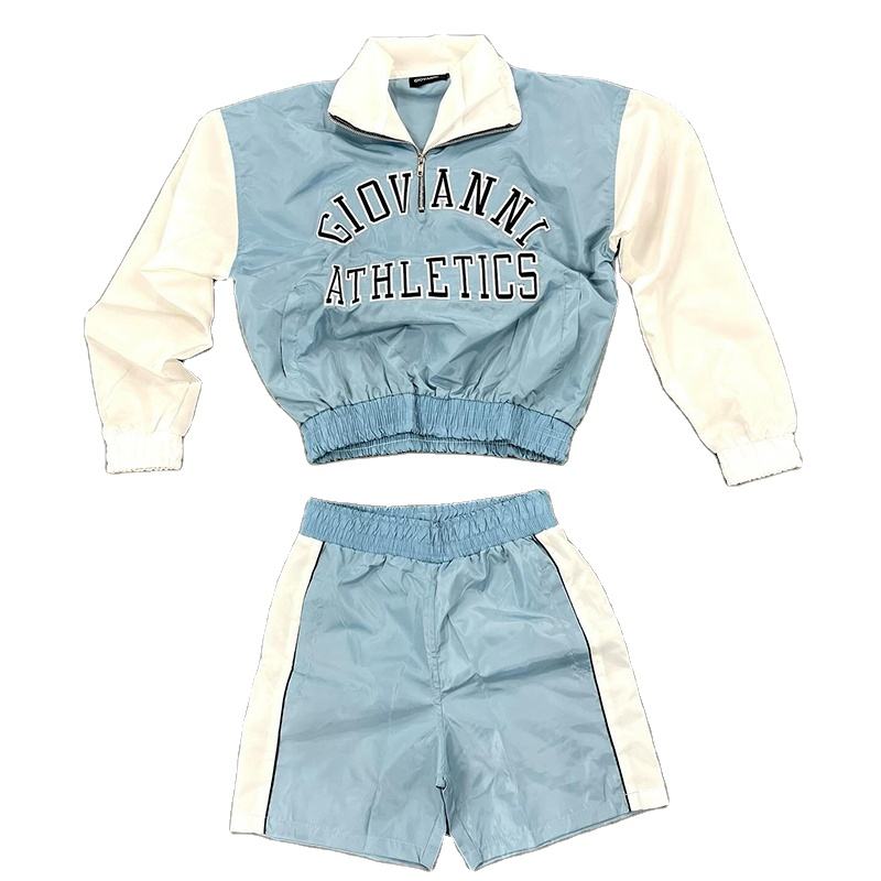 High Quality Custom Embroidered Logo Jogging Suit Nylon Tracksuit Half Zip Cropped Jacket and Windbreaker Nylon Short Set