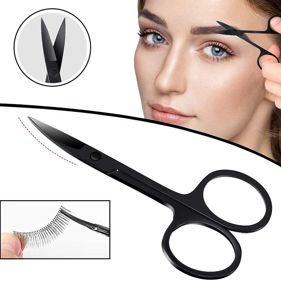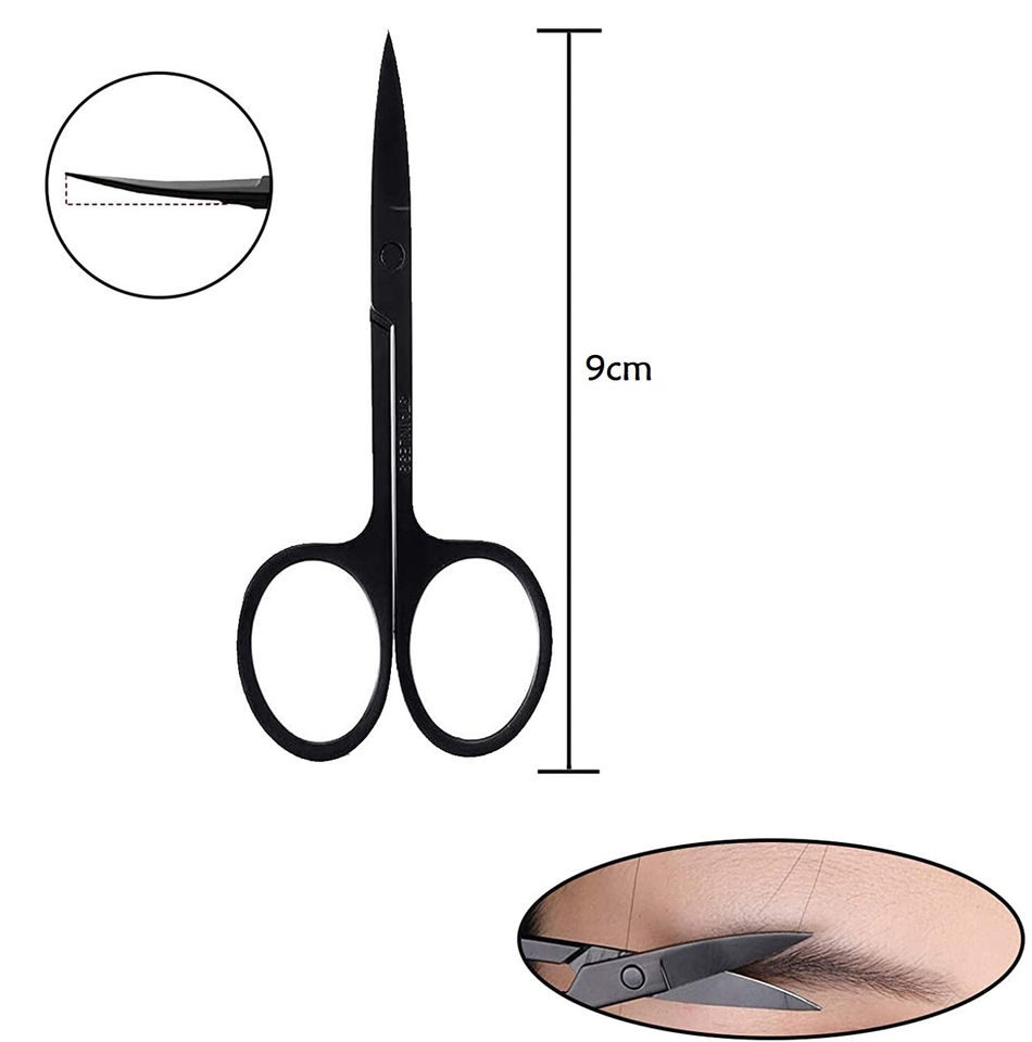 High Quality Custom Eyebrow Kit Stainless Steel Eyebrow Scissors and Eyebrows Tweezers with Slanted Tip black color coating /box