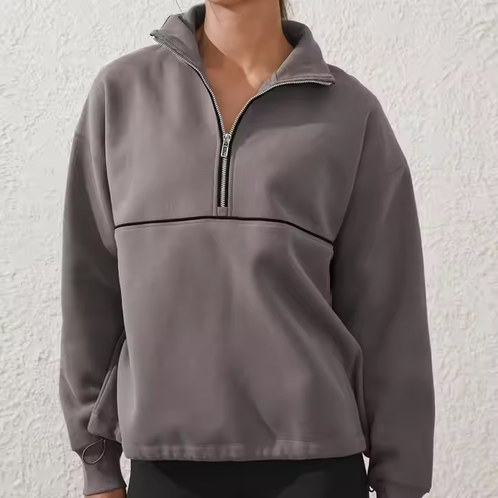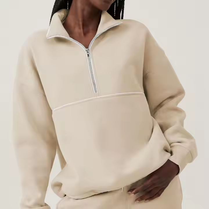 High Quality Custom Graphic Printed Regular Fit Half Zip Cotton Knitted Women Sweatshirt for Daily Wear