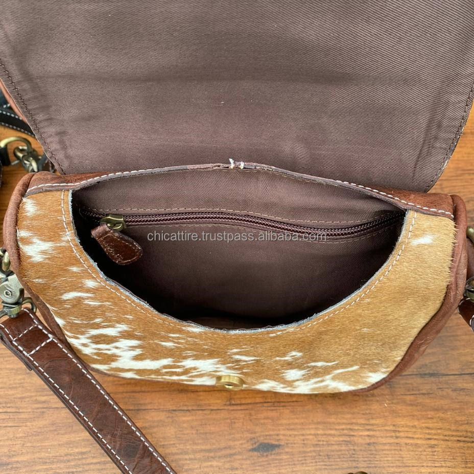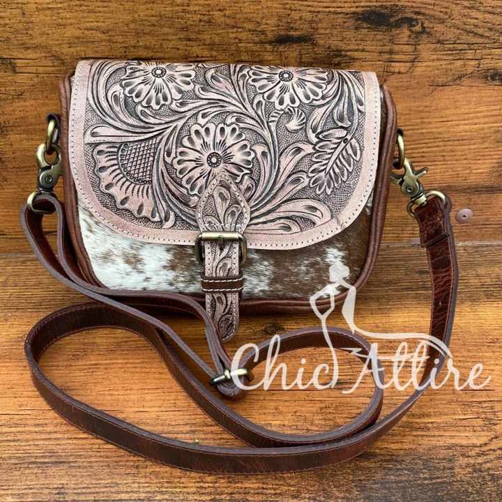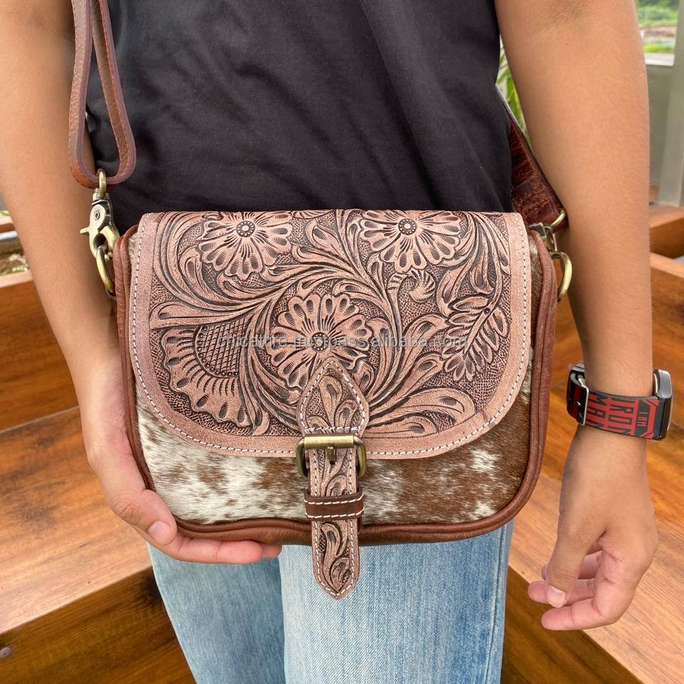 High Quality Custom Hair on Tooled Leather Crossbody Bag for Women's Western Genuine Leather Floral Purse Cowhide Shoulder Bags