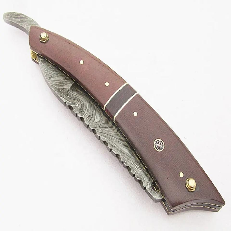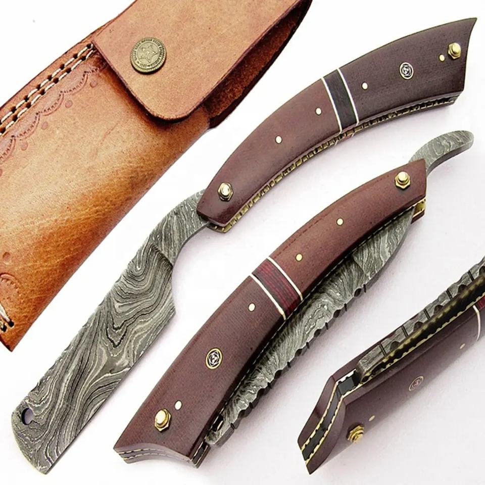High Quality Custom Handmade Damascus Steel Pocket Knife with Leather Sheath Perfect Gift for Camping Father OEM & ODM Supported