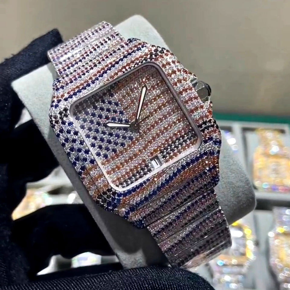 High Quality Custom High-end Luxury Bling Full Diamond Watch VVS Moissanite Hip Hop Iced Out Stainless Steel Mechanical Watches