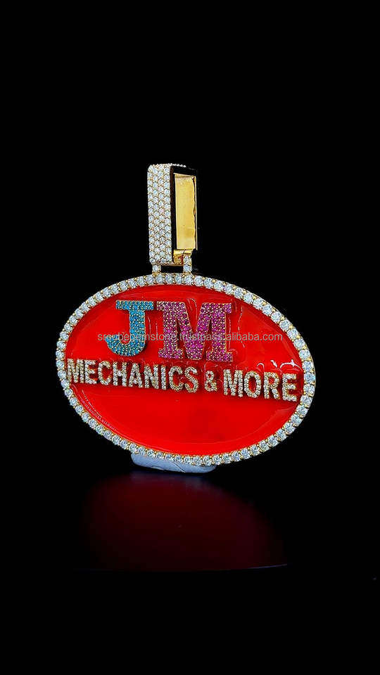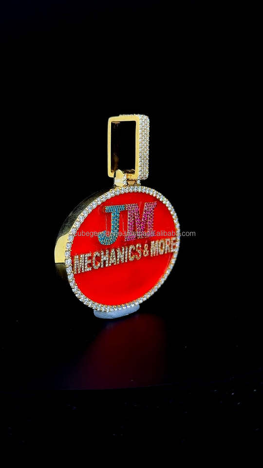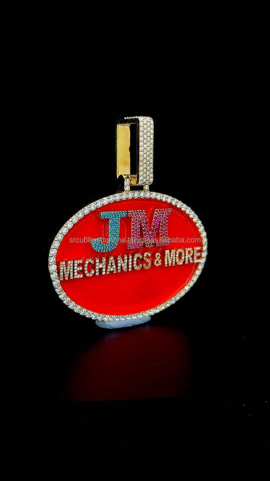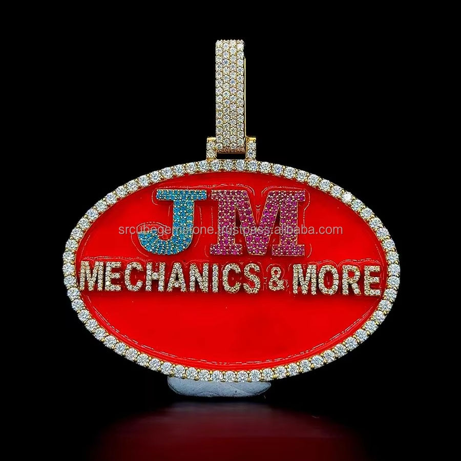 High Quality Custom Letter Pendant Iced Out Jewelry Red Enamel Gold Plated Custom Color Moissanite Diamond Big Oval Pendant