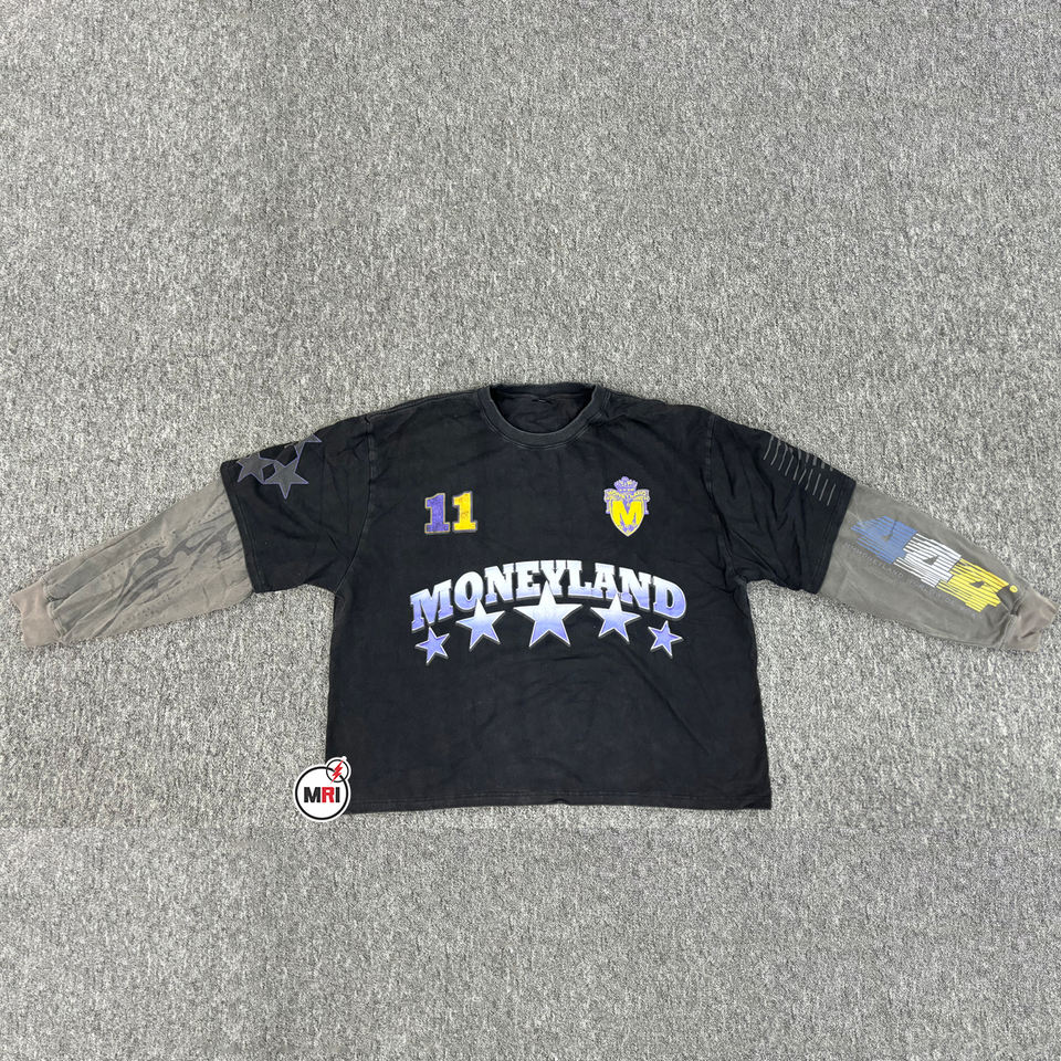 High Quality Custom Logo Acid Wash Double Layer Long Sleeve Vintage Oversized Men's Heavy Weight 100% Cotton Double T-Shirt Sets