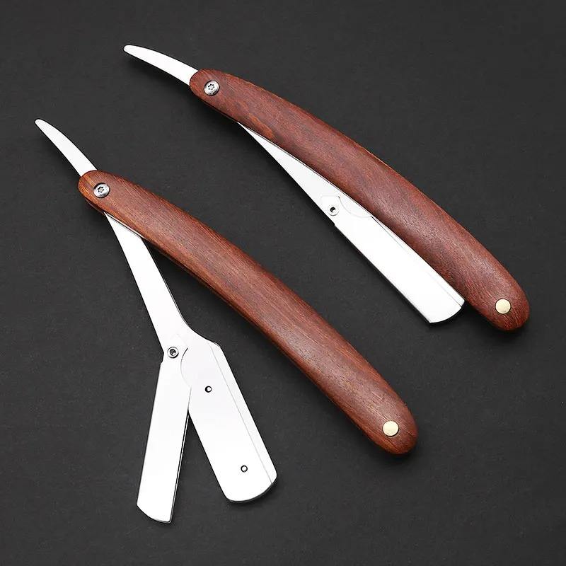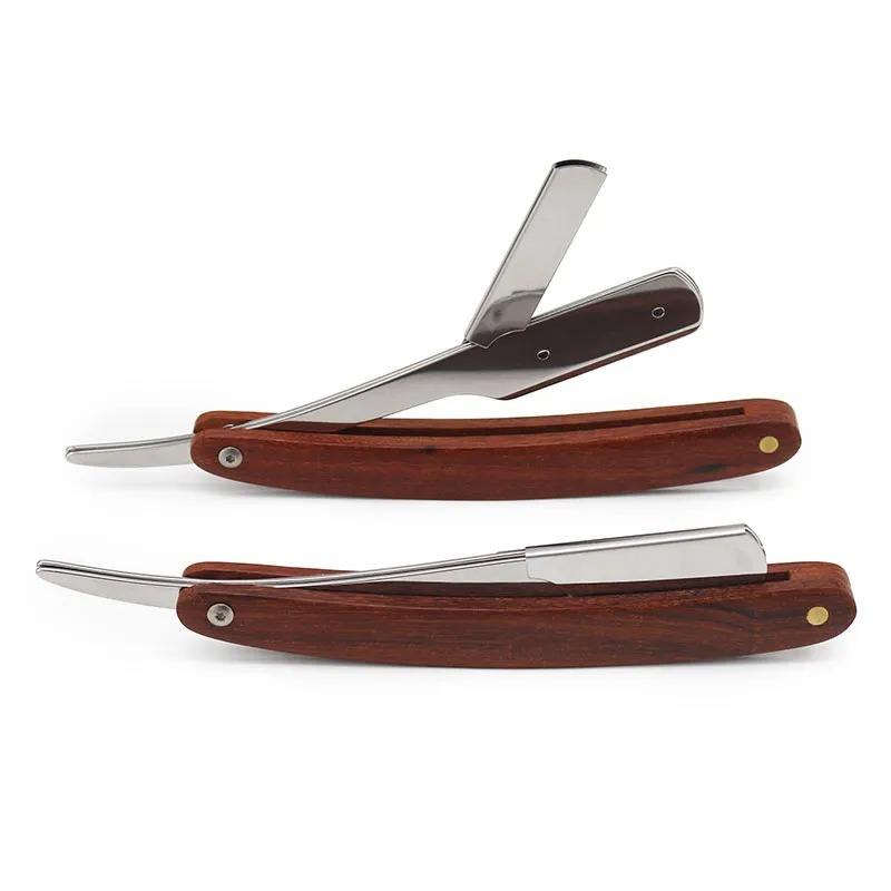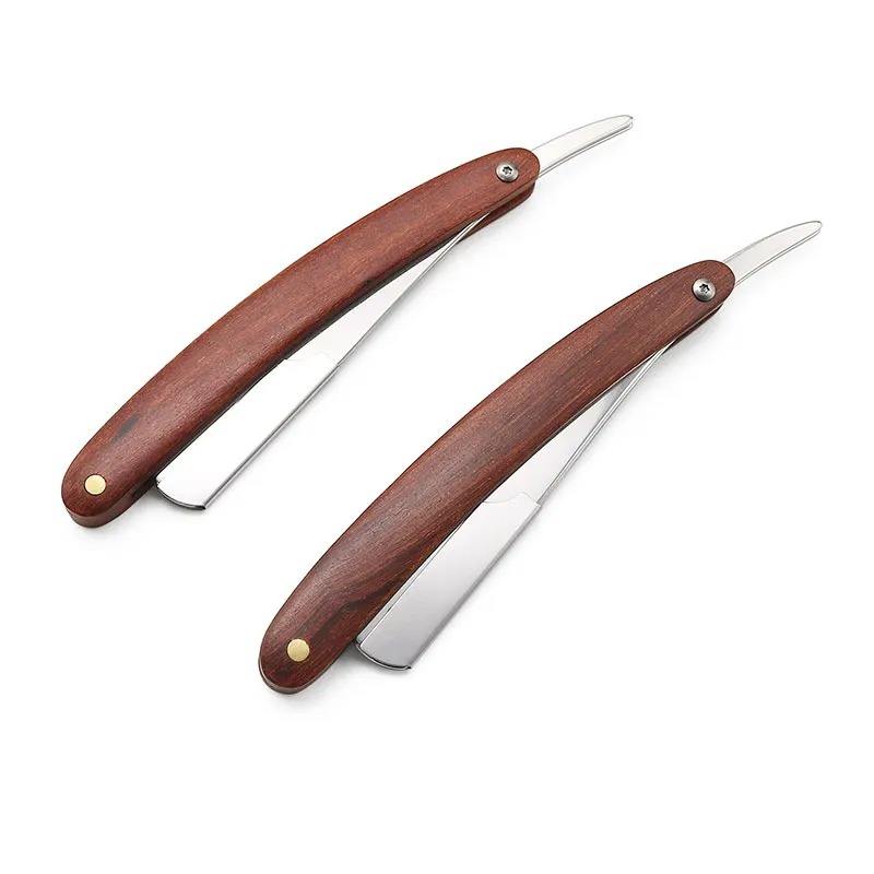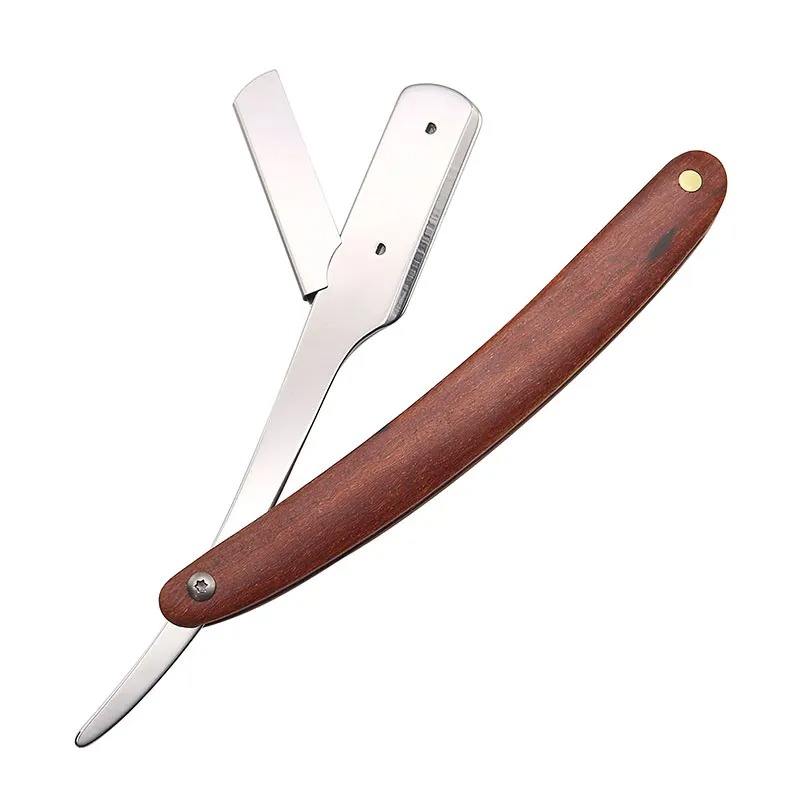 High Quality Custom Logo Cut Throat Straight Razor Safety Disposable Wood Handle Barber Straight Edge Razor Salon Wholesale