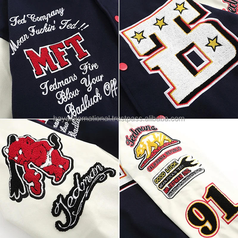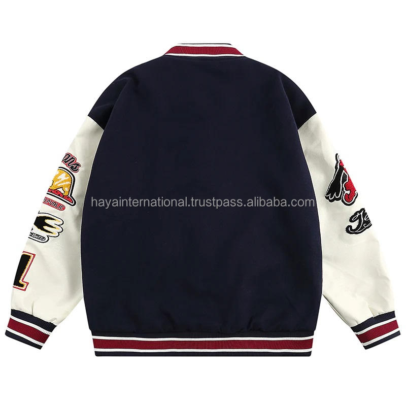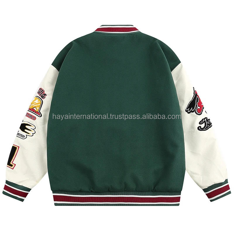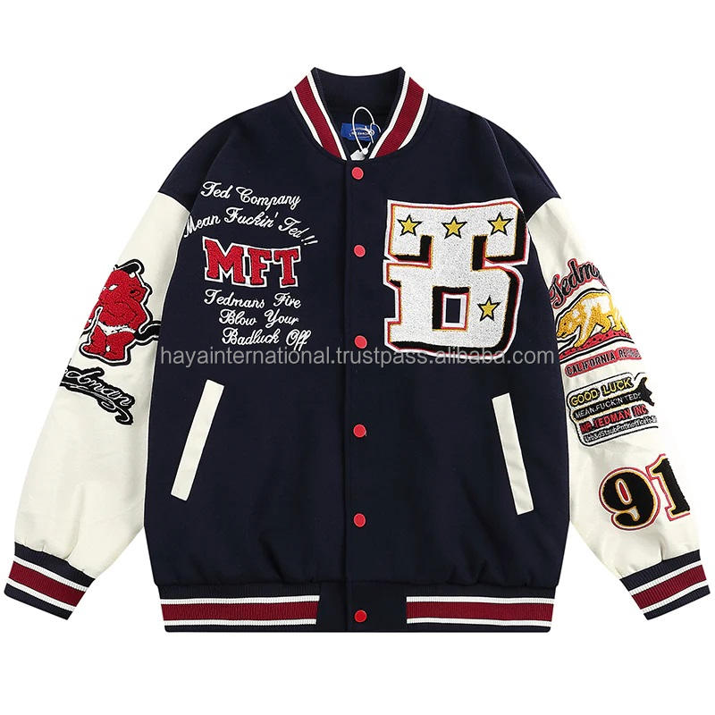 High Quality Custom Logo Embroidery Design Canvas Stand Collar Men's Varsity Baseball Bomber Jacket Button Closure OEM