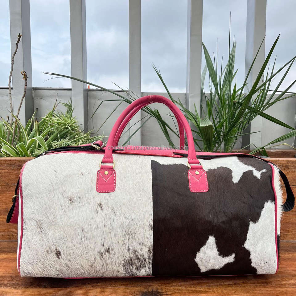 Product name:Tooled Cowhide Pink colour Leather Duffel Bag