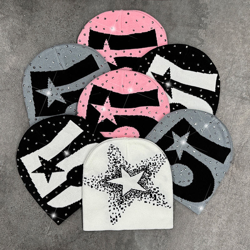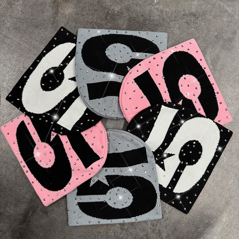 High Quality Custom Logo Rhinestone Winter Beanies Warm Knit Skull Cap Men Women
