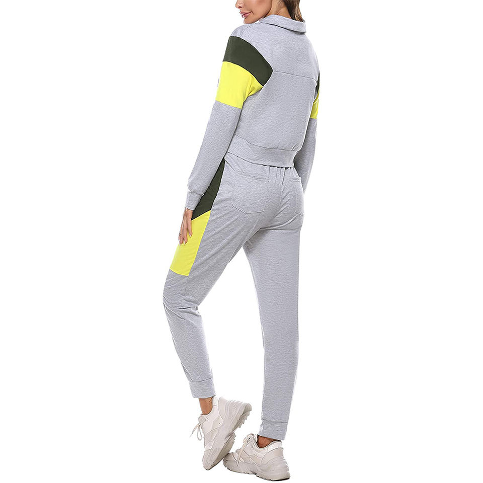 High Quality Custom Logo Sportswear Fleece Jogger Sets Tracksuit For Women Breathable Color Block Sweatshirt And Sweatpants 2026