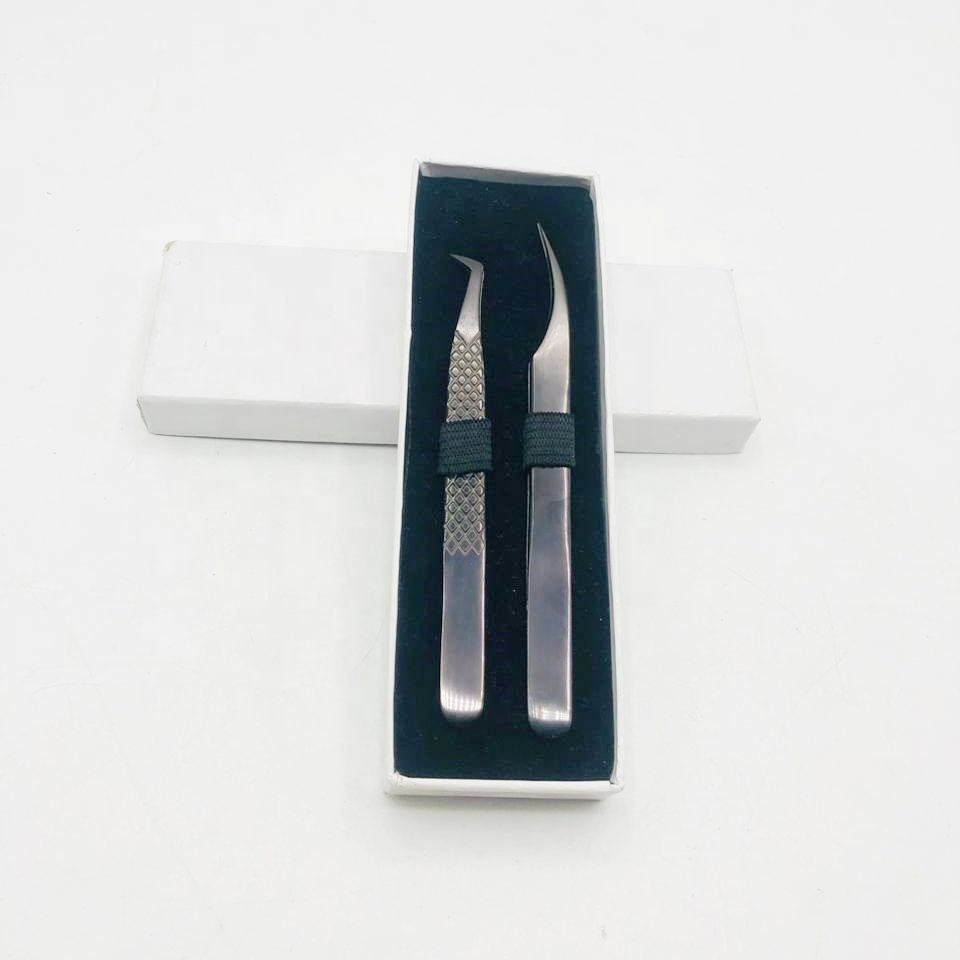 High Quality Custom Logo Stainless Steel Diamond Extension Tweezers Sustainable Pointed Isolation for Eyelash Volume Black Color