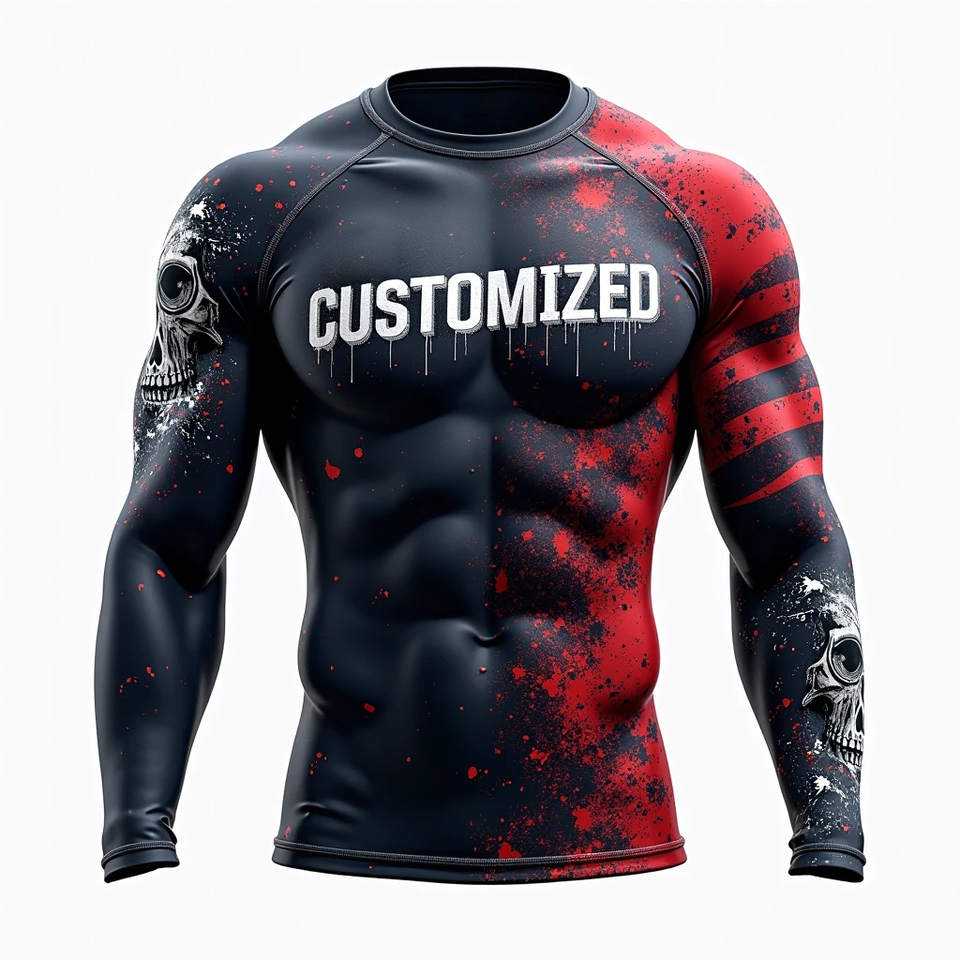 High Quality Custom Logo Sublimation Printed Compression Shirts Surfing Diving Rashguard BJJ Uniforms Unisex MMA Rash Guard