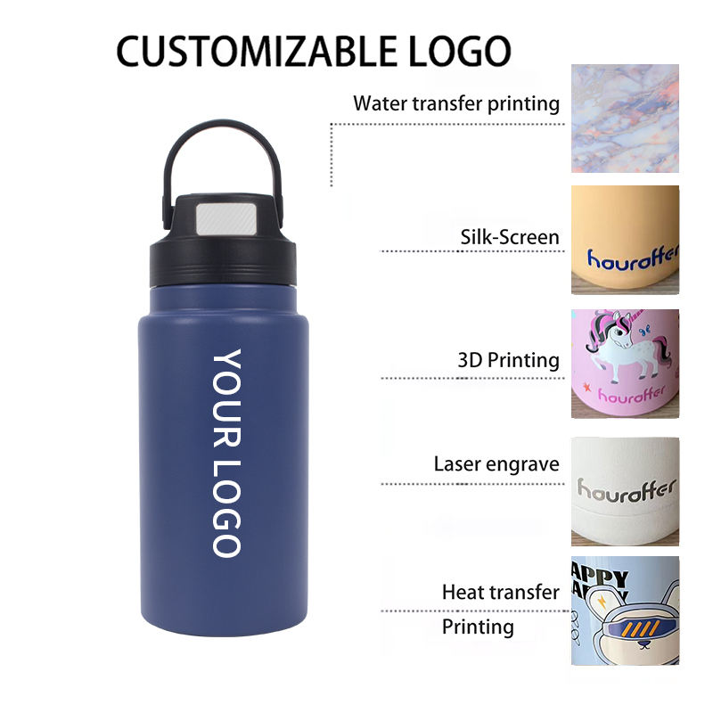 High Quality Custom Logo Water Bottle Double Wall Vacuum Stainless Steel Drinking Bottle With Straw Lids for Christmas Gift