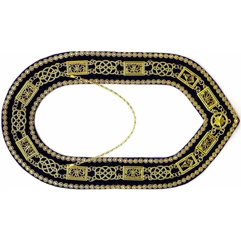 High Quality Custom Made Golden Chain Collar Masonic Grand Lodge Rhinestone with Purple Velvet Backing Quality Metal Crafts
