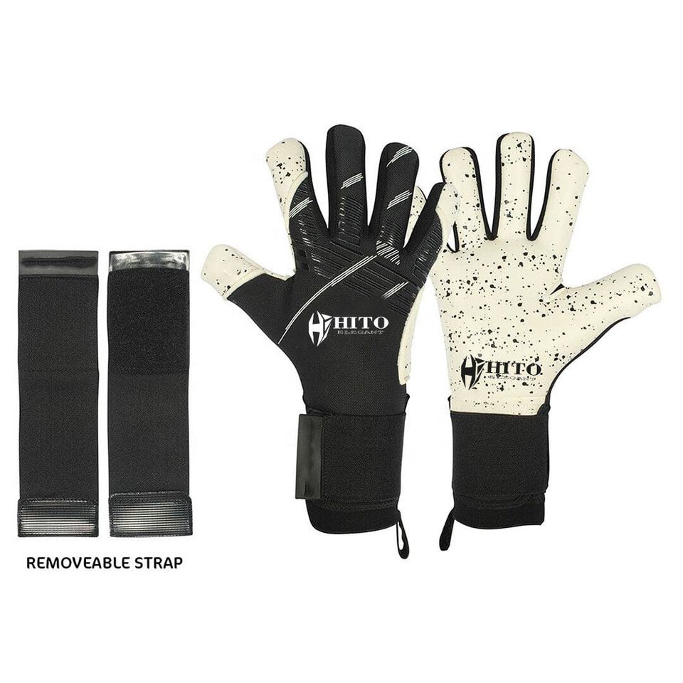 High Quality Custom Made Soccer Goalkeeper Gloves Professional BackHand Silicon Printing Front Palm Quartz Letax Attached Strap