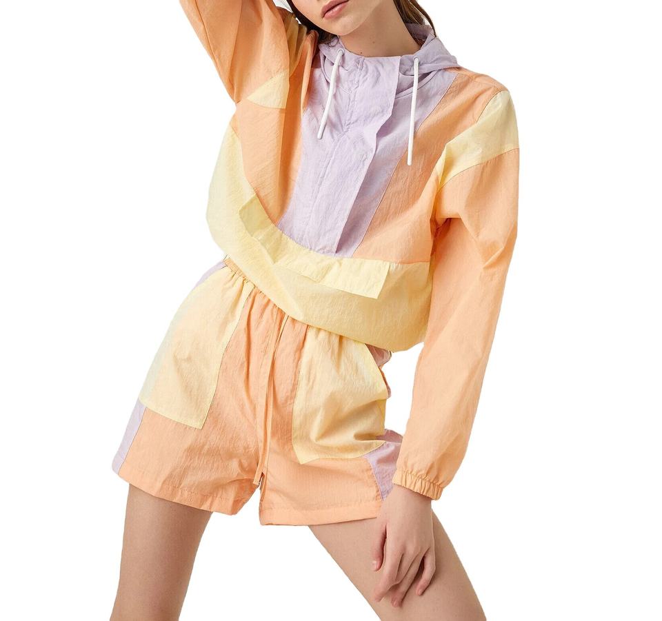 High Quality Custom Men's Color Block Patchwork Windbreaker Polyester Nylon Tracksuit Women Track Zip up Jacket and Shorts Set