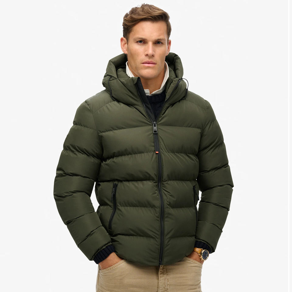 High Quality Custom Men's Hooded Puffer Jacket Winter Warm Lightweight Down Alternative Coat Quilted Bubble Jacket with Zipper