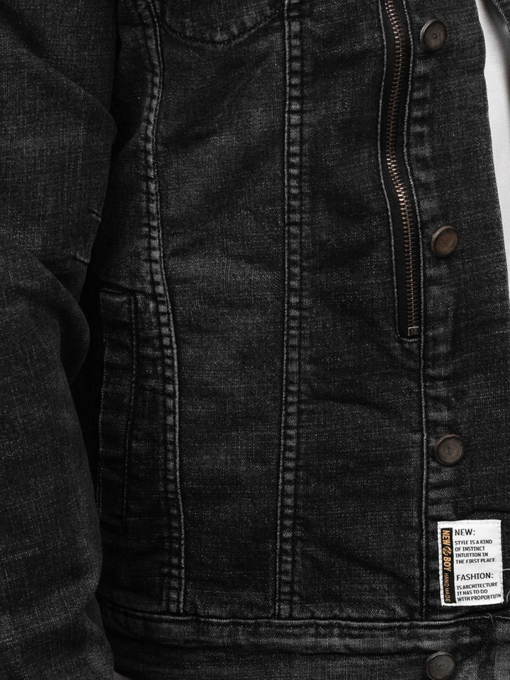 High Quality Custom Men's Stylish Jean Jacket Black Canvas Stand Collar Casual Wear Wholesale OEM Availability