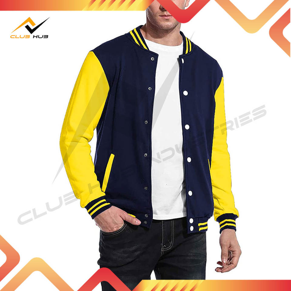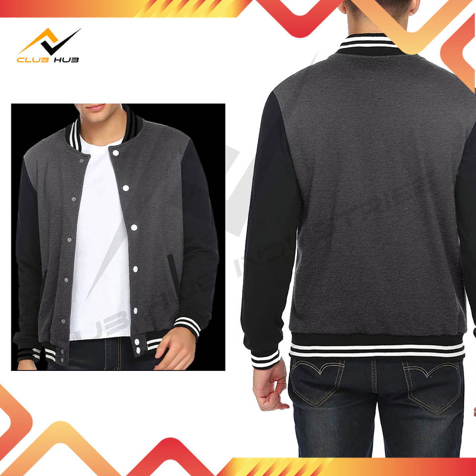 High Quality Custom Mens Double Breasted Varsity Spring Jacket Canvas Cotton Fleece Front Pocket High Street Style