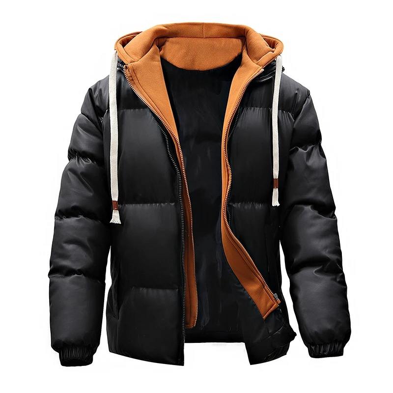 High Quality Custom OEM Printed Customized Logo Hooded Canvas Winter Puffer Jacket for Men Front Logo Waterproof Feature