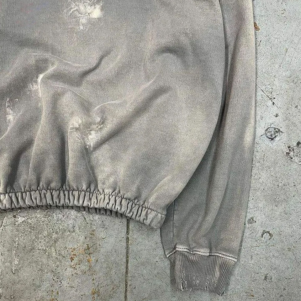 High Quality Custom Oversized Winter Heavyweight 100% Cotton Distress Embroidery Vintage Pullover Hoodies for Men