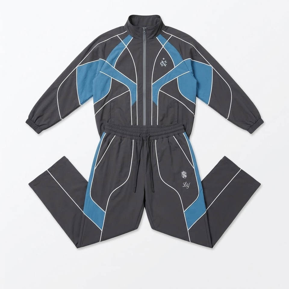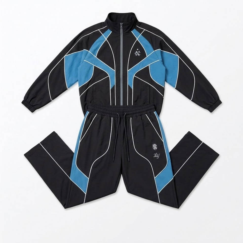 High Quality Custom Patchwork Polyester Reflective Nylon Windbreaker Track Jacket and Pants Set Knitted Men's