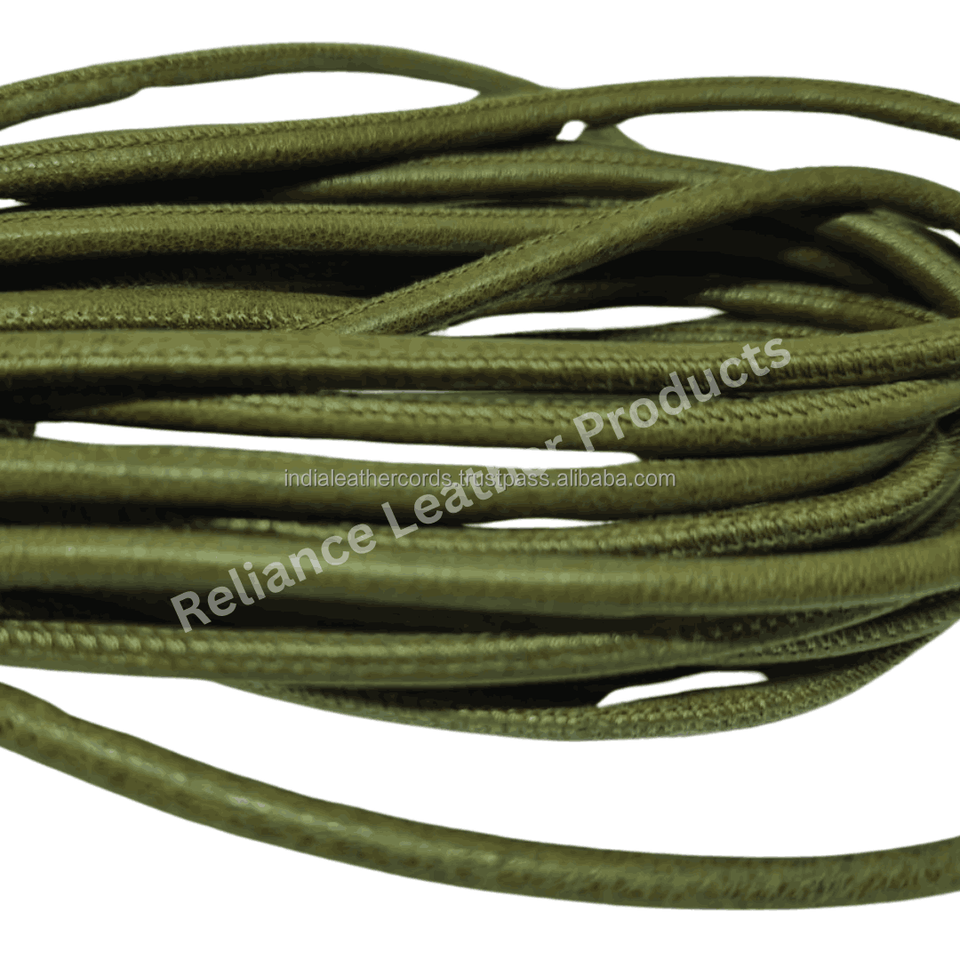 High Quality Custom Pink Round Stitched Leather Cord rope for jewelry bracelet DIY craft handbags accessories, flexible strap