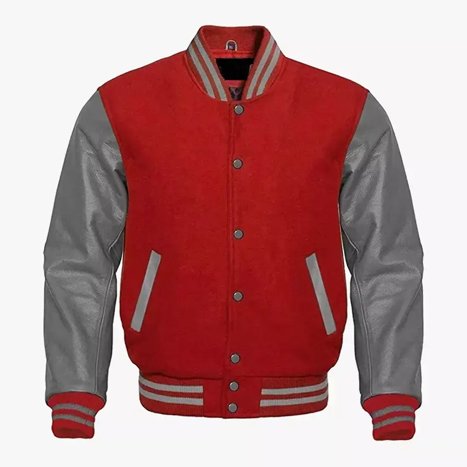 High Quality Custom Print Embroidered Canvas Stand Collar Front Logo Oversized Varsity Jacket for Men