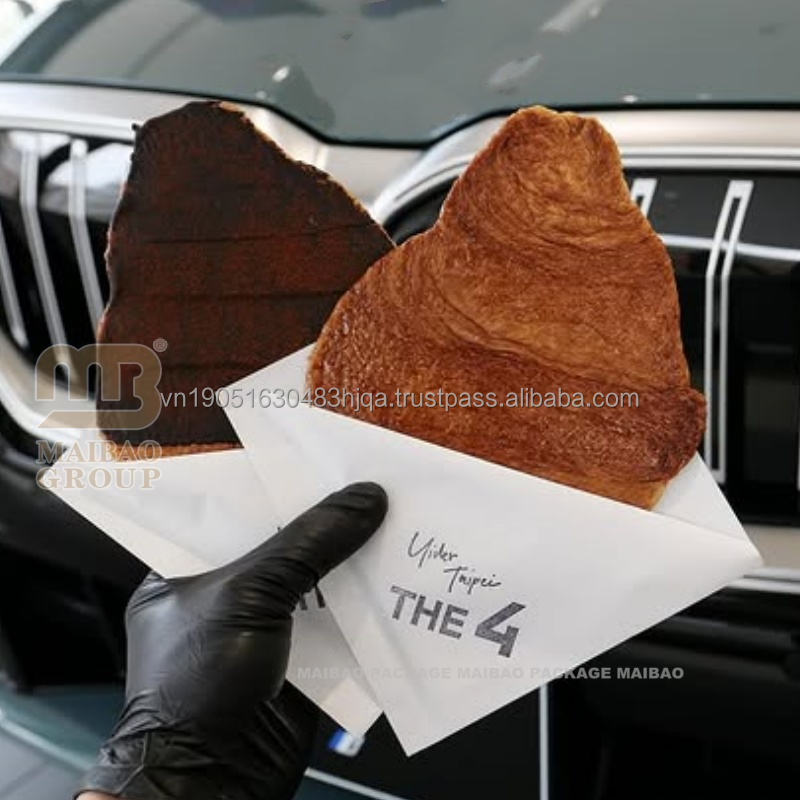 High Quality Custom Print Logo Glassine Waxed Flat Croissant Bags Disposable Paper Bag For Packaging